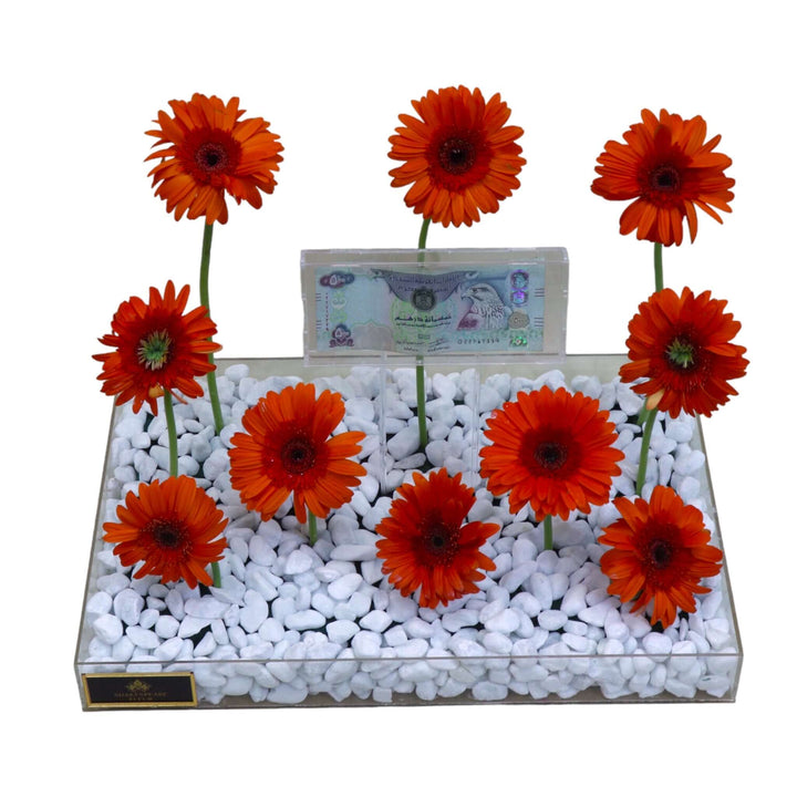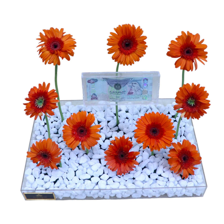 10 زهور جربيرا، 1 صندوق نقود أكريليك