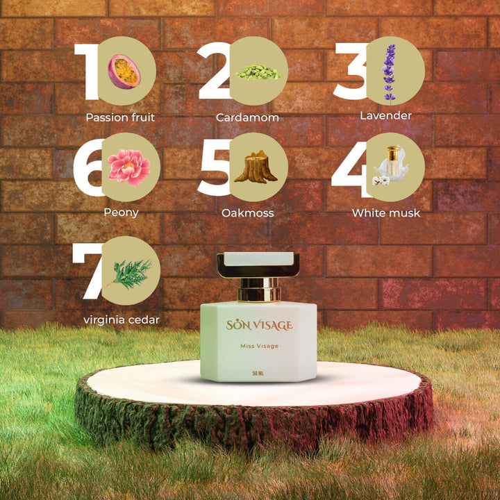 Miss Visage Perfume by Son Visage, Miss Visage the luxury and sophistication of Son Visage, an elegant Women Eau de parfum . This esteemed fragrance matches the fine quality of the car brand that inspired it, blending citrus, spicy and woody accords for a decadent concoction worthy of every charismatic, confident women who wears it. Top notes are Passion fruit, mango and unique bergamot for a citrus-infused burst of exhilaration meant to awaken the senses from the start. Middle notes include lavender, peony, cardamom, rviolet for an Oriental atmosphere that’s exotic and intriguing, mixed perfectly with the addition of sea water. Completing the scent are base notes of oakmoss, Virginia cedar, white musk, Indian sandalwood and vetiver for an earthy, potent combination that’s sensual and intoxicating.
